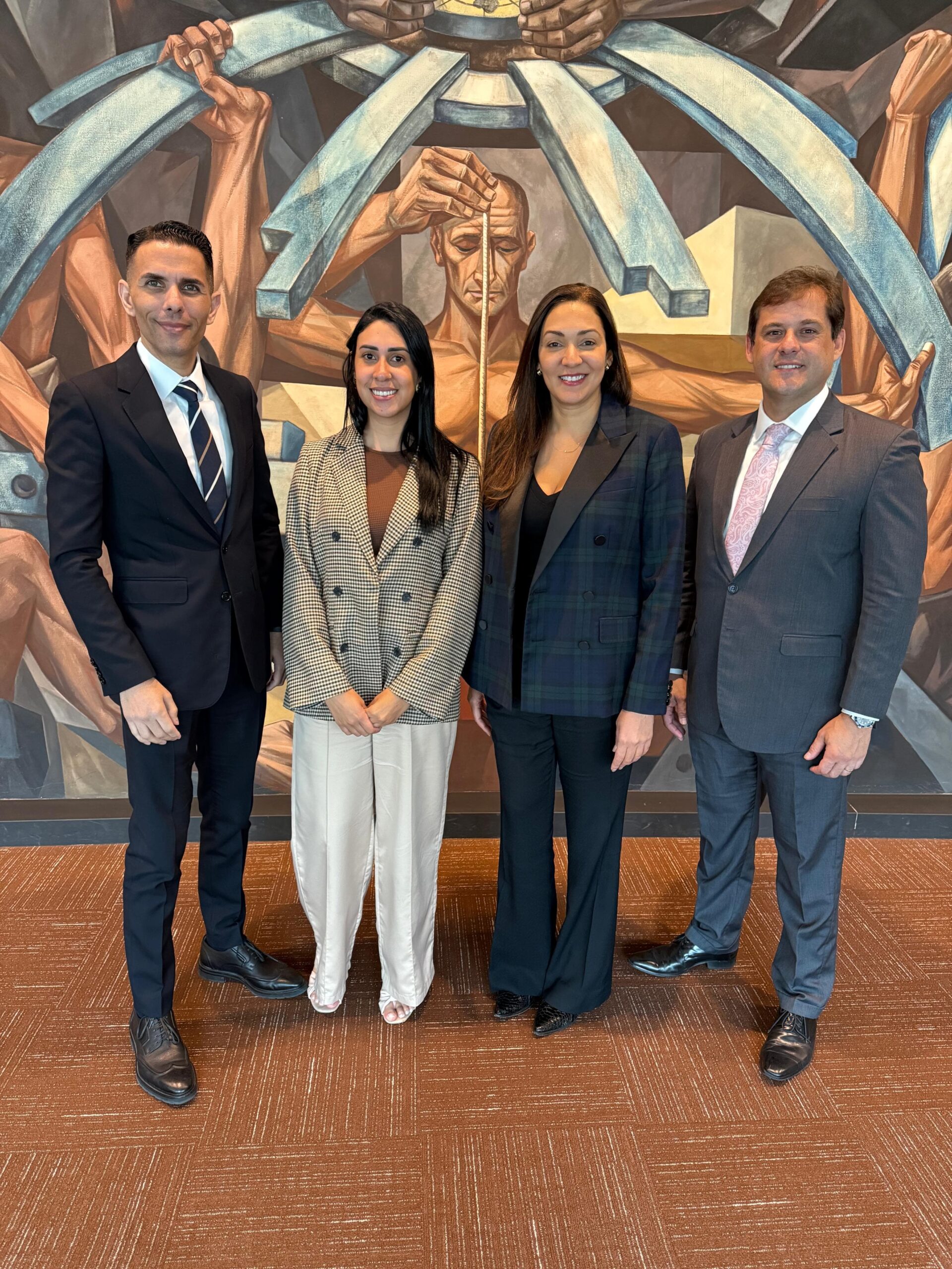 A delegação da UNIMAR foi composta pela professora e coordenadora da INSOL, Profa. Dra. Mariana Ribeiro Santiago, referência nacional e internacional em Direitos da Natureza; pelo coordenador do PPGD/UNIMAR, Prof. Dr. Jonathan Barros Vita; e pelos discentes pesquisadores Liciane Silva e Henrique Garcia.