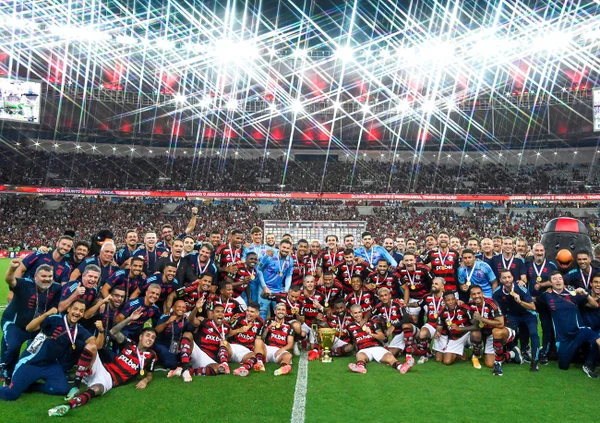 Elenco do Flamengo comemorando título do Campeonato Carioca