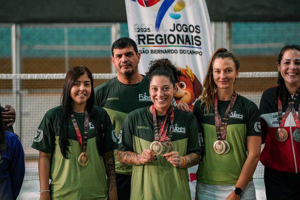 Tradição, investimento na base, contratações pontuais acertadas e muita vontade de vencer. Esses são alguns dos motivos que explicam o início de semana vitorioso na 67ª edição dos Jogos Regionais, em São Bernardo do Campo. Nesta segunda (14), as equipes femininas foram a responsáveis pela maioria dos títulos, vencendo no basquete sub-21, badminton, xadrez e futsal. Também foi ouro a bocha, enquanto o badminton masculino terminou na 3ª colocação. Na classificação geral, Santos está na liderança com 92 pontos, seguido de Praia Grande, com 59, e a anfitriã São Bernardo do Campo, com 46. A competição vai até o dia 20 de julho e classifica para os Jogos Abertos do Interior.