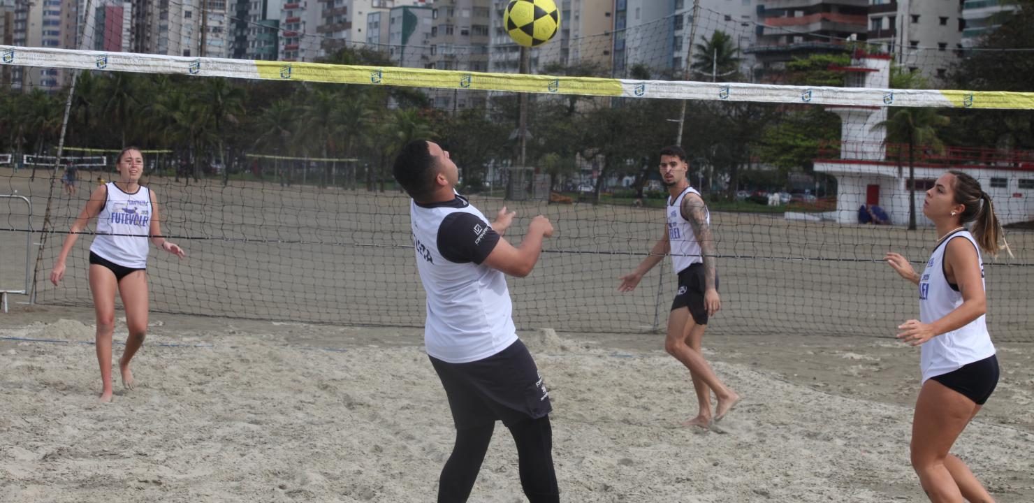 As areias da Praia do Gonzaga, em frente à Praça das Bandeiras, foram tomadas pela energia do futevôlei neste sábado (13), com a realização da 2ª etapa do 4º Campeonato Santista da modalidade. O evento é promovido pela Prefeitura de Santos, por meio da Secretaria de Esportes (Semes), em parceria com a Liga Regional de Futevôlei do Litoral Paulista (LRFVLP).
