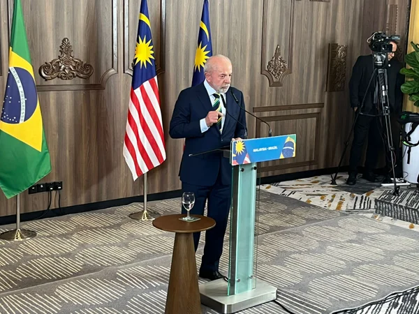 O presidente Luiz Inácio Lula da Silva (PT) em coletiva de imprensa na Malásia, sobre o encontro com o presidente dos EUA, Donald Trump.