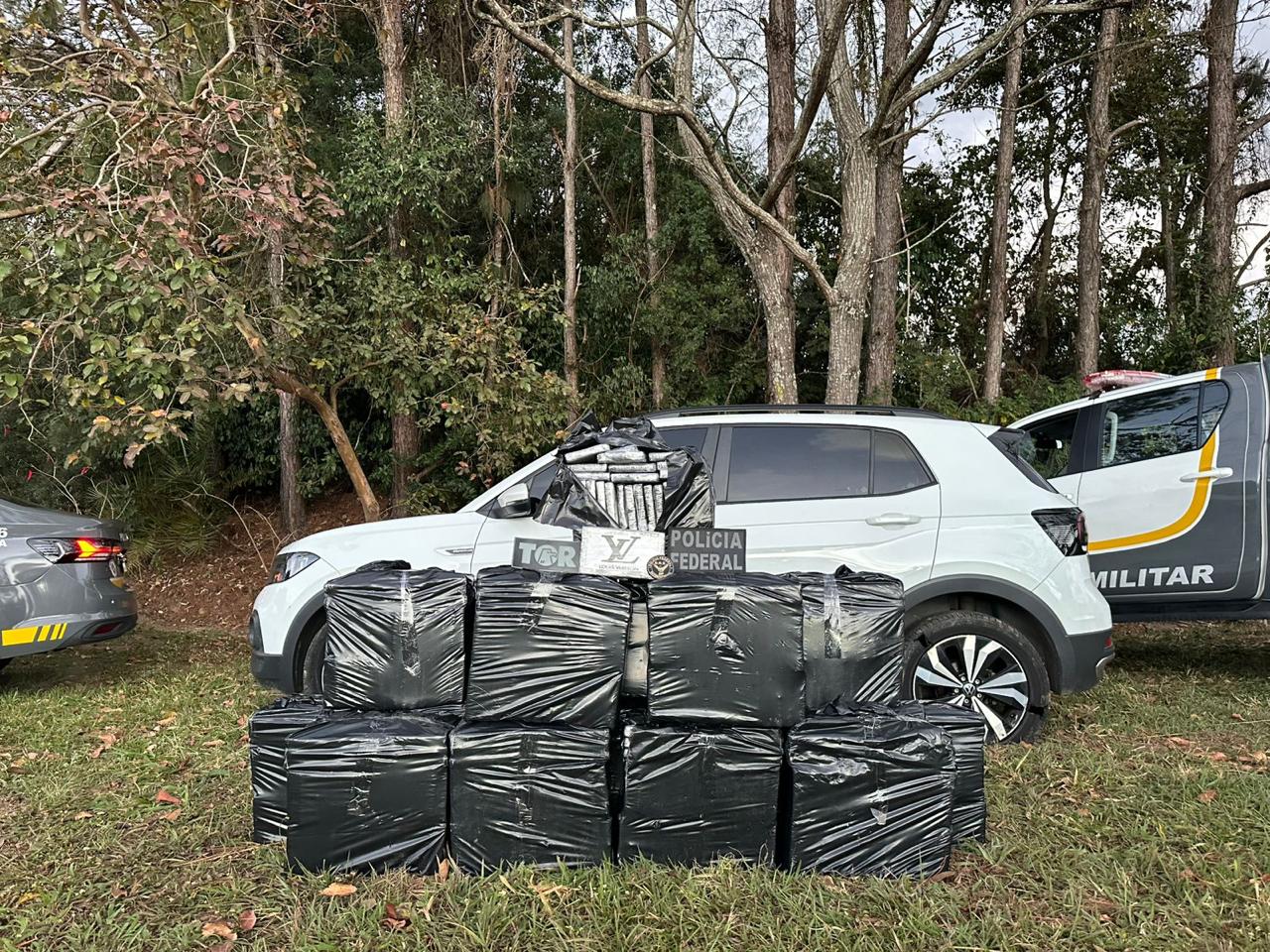 No veículo foram apreendidos dezenas de tijolos de cocaína que totalizaram 381 quilos. O motorista não foi localizado.