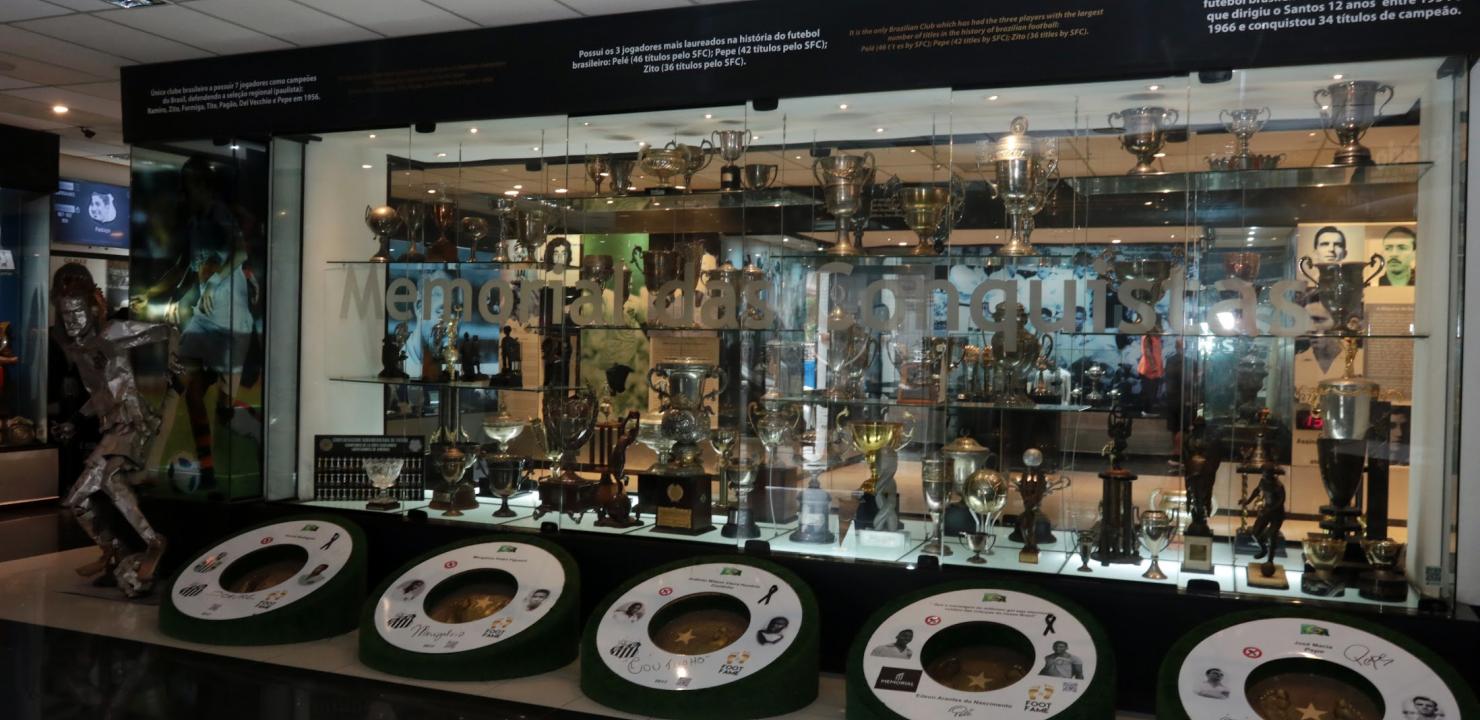 Logo na chegada, os visitantes são recebidos por uma impressionante coleção de troféus e objetos históricos, que percorrem cronologicamente a trajetória do clube, desde as primeiras conquistas até os títulos mais recentes. O acervo celebra ídolos eternos e momentos inesquecíveis, mostrando por que o Santos é reconhecido como a casa do maior atleta de todos os tempos e uma das maiores fábricas de craques do futebol mundial.
