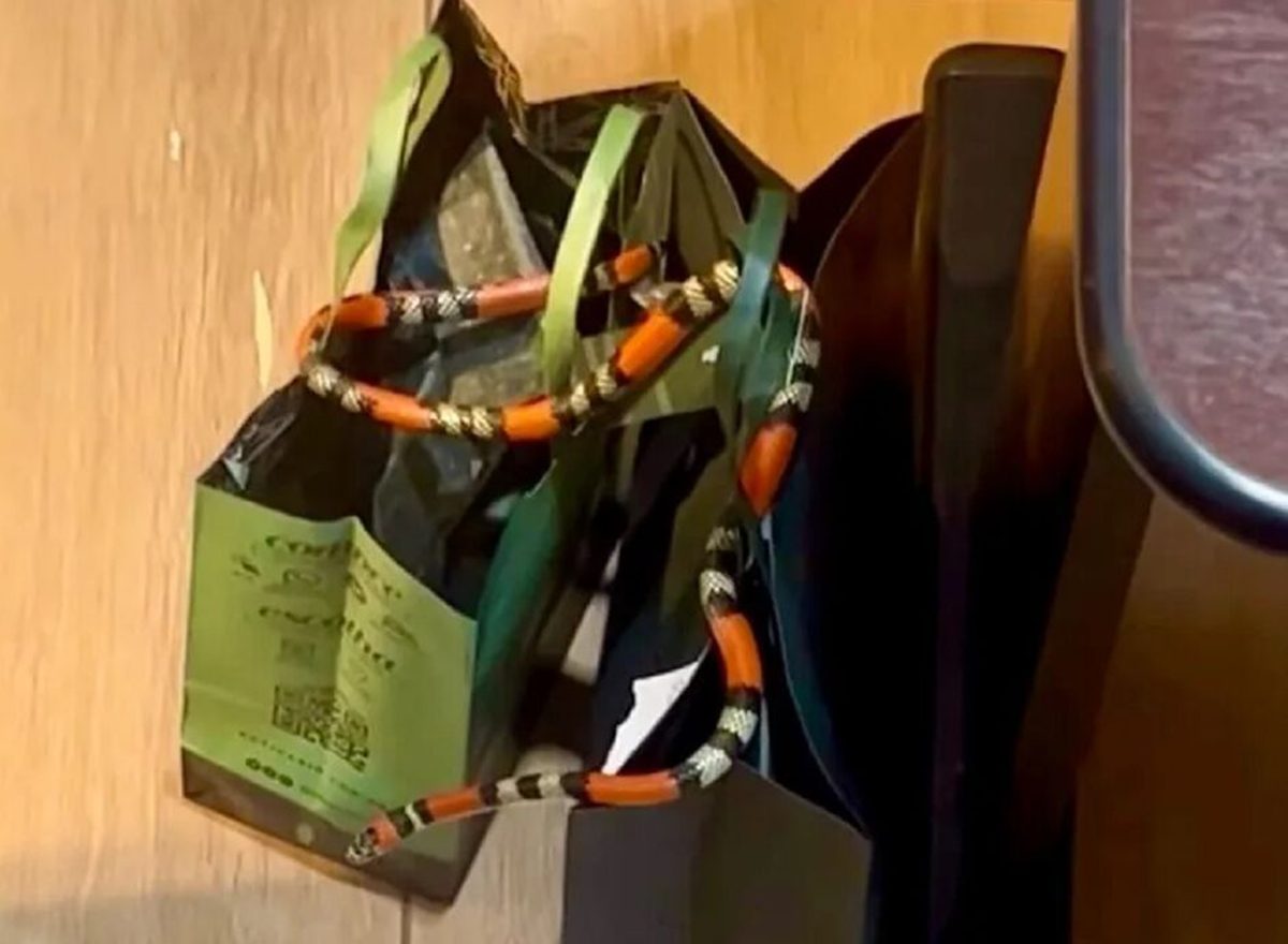 O animal, de cores preta, vermelha e branca, foi descoberto por funcionárias entre sacolas de papel, tentando alcançar uma mesa, segundo informou o site Cenário MS.