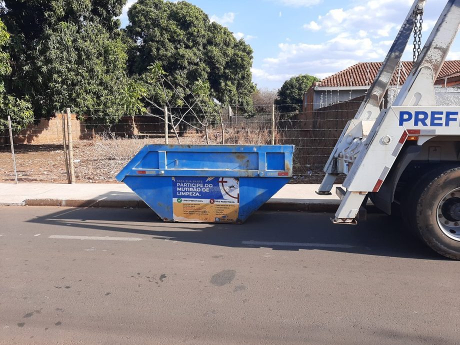 A partir de segunda-feira, dia 1º de setembro, o Mutirão da Limpeza, ação da Prefeitura de Três Lagoas, realizada pela Secretaria Municipal de Saúde (SMS), em parceria com a Secretaria Municipal de Infraestrutura, Transporte e Trânsito (SEINTRA), iniciará a distribuição de caçambas nos bairros Jardim Rodrigues e Jardim Esperança.