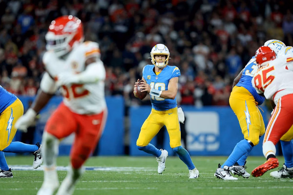 Em partida realizada nesta sexta-feira (5/9), na Neo Química Arena, em São Paulo, o Los Angeles Chargers venceu o Kansas City Chiefs por 27 x 21 em primeiro jogo das equipes na nova temporada da NFL. O destaque do jogo foi o quarterback Justin Herbert com três passes para touchdown. Ele completou 25 dos 34 arremessos tentados e alcançou 318 jardas aéreas no confronto.