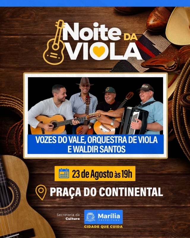A Prefeitura de Marília, por meio da Secretaria Municipal da Cultura, realizará neste sábado, 23 de agosto, mais uma edição do projeto Noite da Viola, que desta vez será na Praça do Jardim Continental.