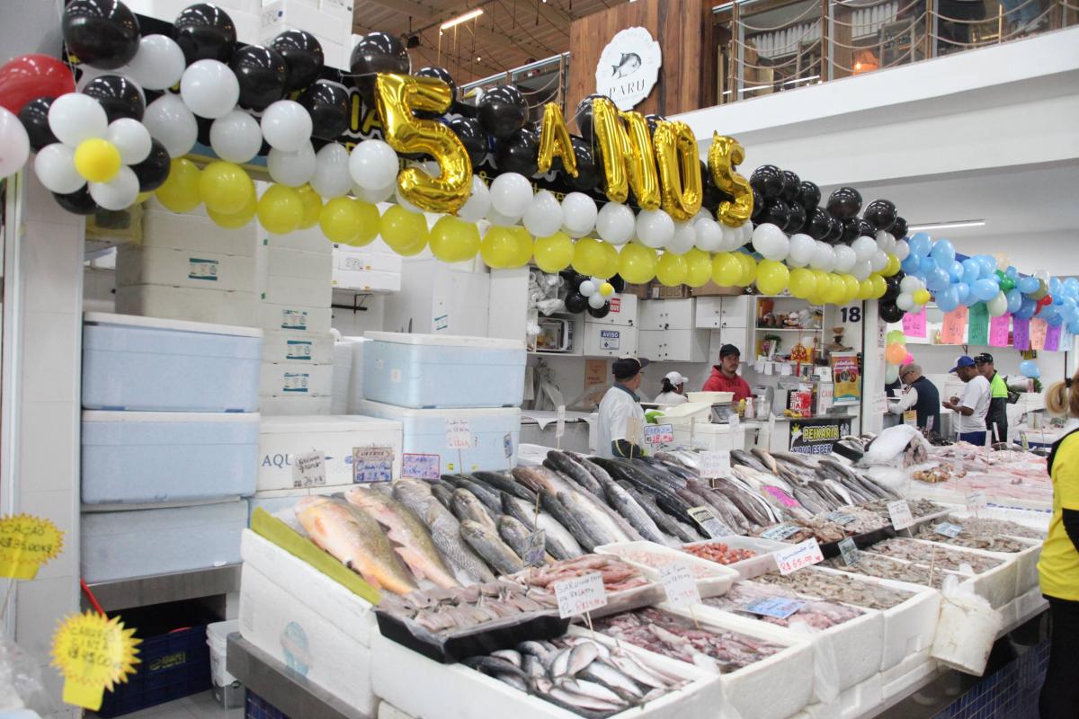 A permissionária Ana Maria de Andrade, do Ana Maria Pescados, viveu de perto os cinco anos comemorados neste sábado, tendo vindo do antigo mercado de peixes. “Melhorou muita coisa, até porque o antigo era aberto, então em época de chuva nós ficávamos molhados, no calor também, o sol batia na bancada dos peixes. Aqui tem infraestrutura, banheiro, ar-condicionado e refeitório”, conta.