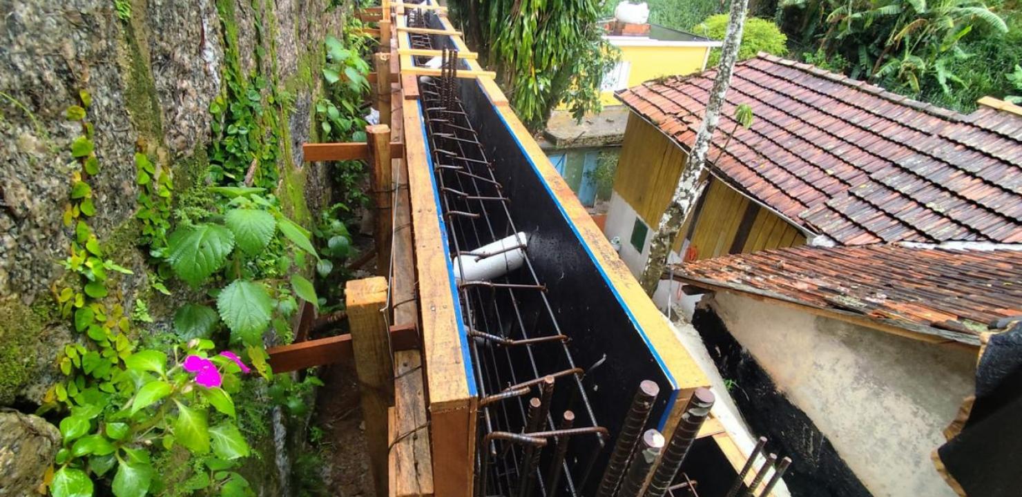 Atualmente, estão em fase final os preparativos para a concretagem do muro de arrimo que garantirá mais segurança para o trânsito de pedestres e veículos. Estes trabalhos estão marcados para a próxima semana, dependendo das condições do tempo.