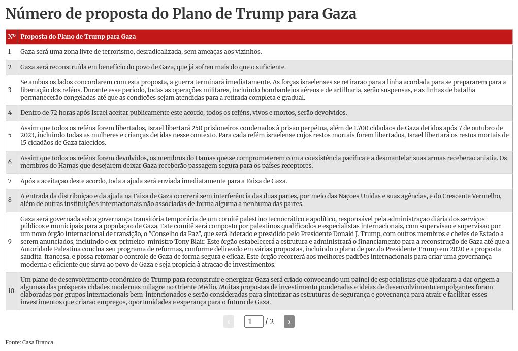 Entenda os pontos do plano de paz proposto por Trump para Gaza