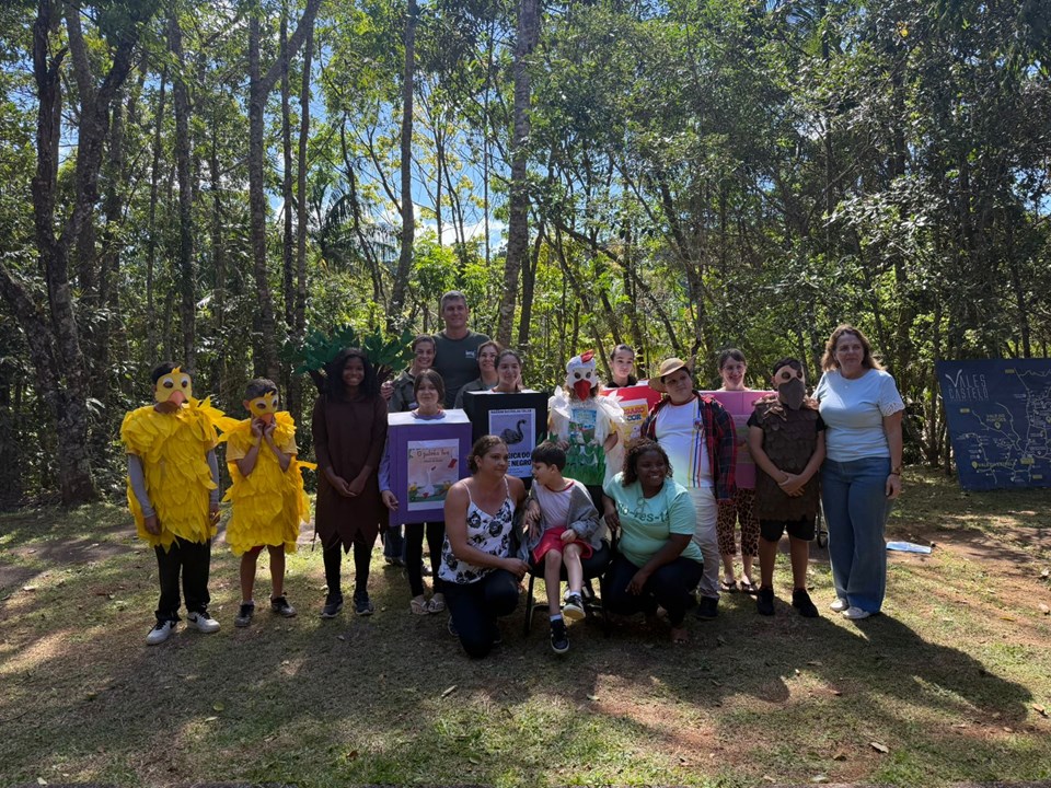 O encerramento aconteceu na sede do Parque do Forno Grande e contou com alunos do 5º ano, acompanhados por professores, orientadores e coordenadores da escola. Os estudantes prepararam uma apresentação teatral baseada no clássico “A Galinha dos Ovos de Ouro”.