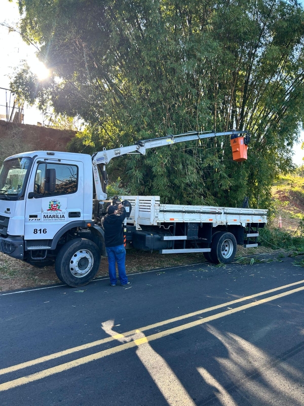 A Secretaria Municipal do Meio Ambiente e Serviços Públicos está realizando a poda dos bambuzais localizados às margens da estrada vicinal de acesso ao distrito de Rosália.