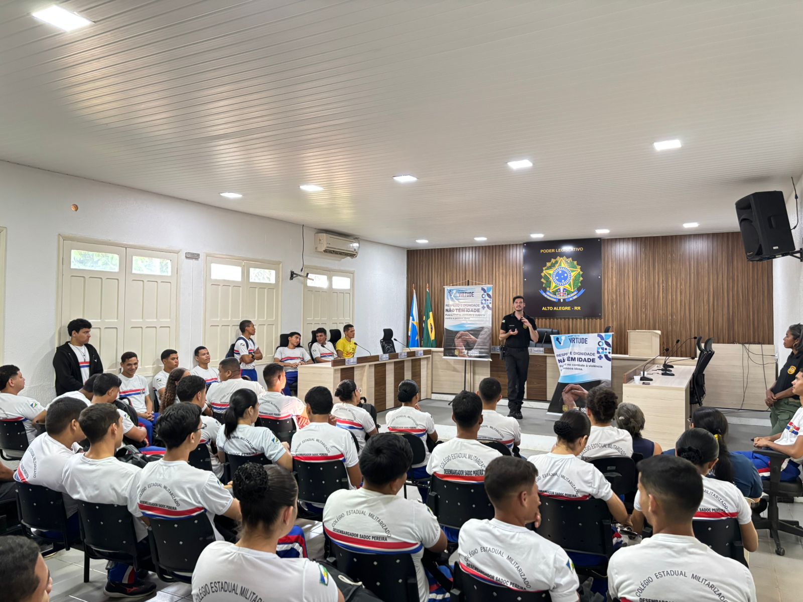 No dia 7 de outubro, a equipe da DPIPCD esteve em Alto Alegre, em parceria com o delegado Vinícius Quadros, onde promoveu uma palestra na Câmara de Vereadores voltada aos alunos do Colégio Estadual Militarizado Desembargador Sadoc Pereira.