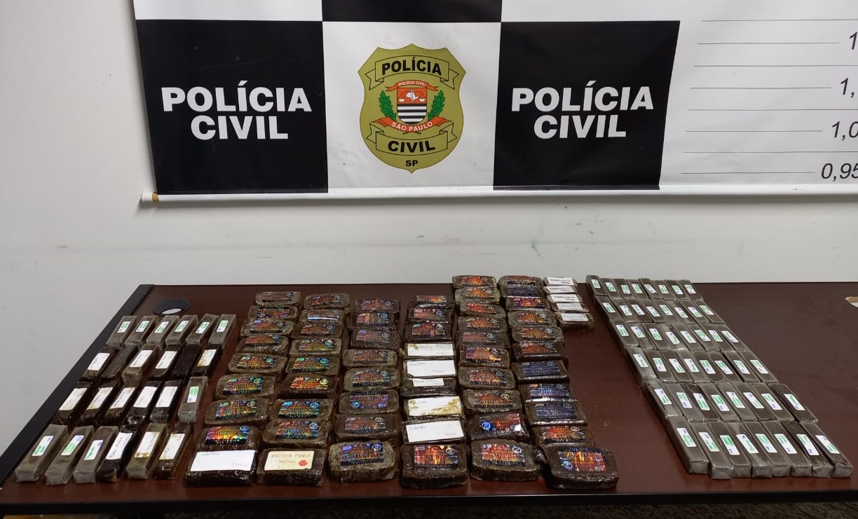 A mala dela foi apreendida e equipe iniciou as buscas. Em um fundo falsa da bolsa foram encontrados 61 tijolos e 72 bastões prensados da droga, conhecida também como haxixe. A droga teria como destino a comercialização na região da Baixada Santista e em São Paulo.
