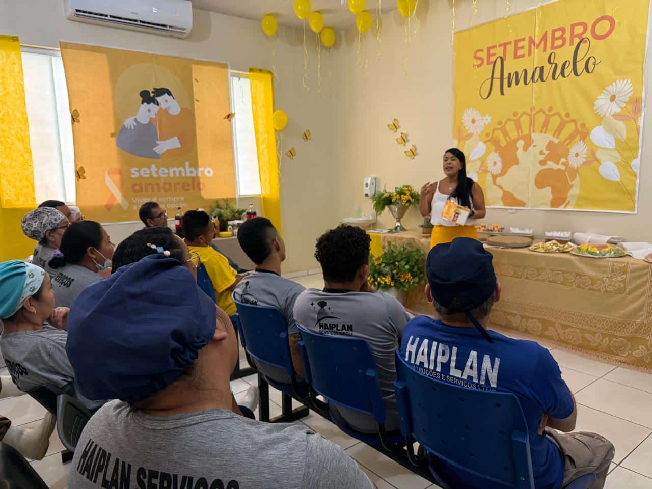 Nesta sexta-feira, 19, a Policlínica Coronel Mota promoveu uma palestra alusiva à campanha Setembro Amarelo, mês de conscientização sobre cuidados com a saúde mental.