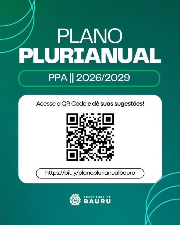 A Prefeitura de Bauru, através da Secretaria da Fazenda, abriu o período em que a população pode contribuir com sugestões para a elaboração do Plano Plurianual (PPA) 2026/2029. O PPA vai estabelecer os programas e projetos que contemplarão as políticas públicas do município para os próximos quatro anos. As sugestões devem ser feitas até o dia 22 de agosto, no site da prefeitura, em https://www2.bauru.sp.gov.br/financas/pecas_planejamento.aspx
