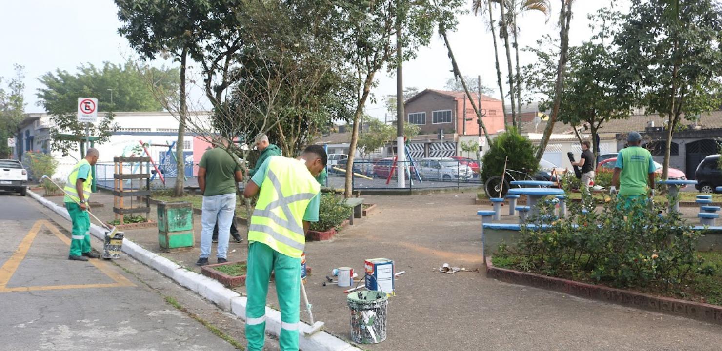 Equipes realizam ações de zeladoria urbana, como raspação e caiação, poda de árvores, corte de grama, manutenção asfáltica, troca de grelhas e bocas de lobo, além de reparos em praças e outros pontos. As intervenções visam garantir mais segurança, organização e bem-estar para moradores e frequentadores das regiões atendidas.