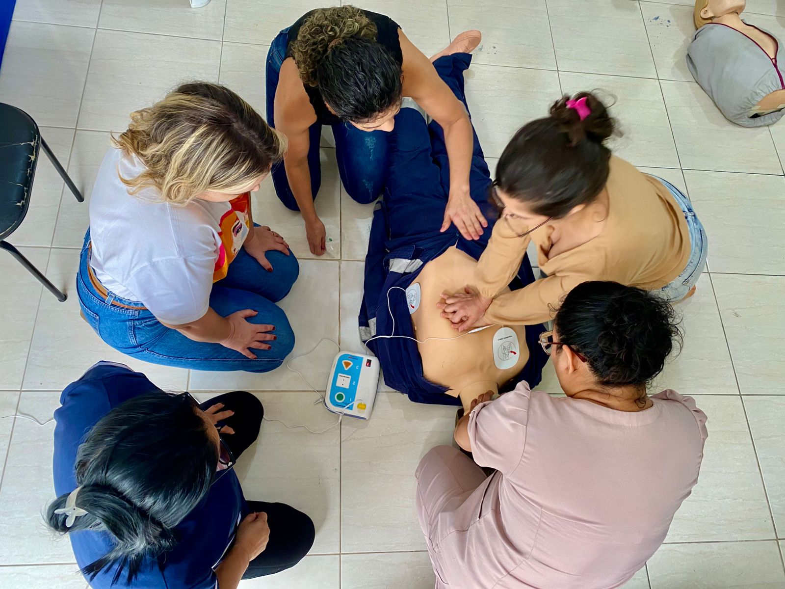 Durante o curso, os participantes puderam treinar técnicas básicas de suporte à vida, como manobras de reanimação, compressões torácicas, ventilação e condutas em casos de engasgos ou crises convulsivas. O momento também foi uma oportunidade para reforçar o trabalho em equipe e os protocolos de urgência dentro da unidade.