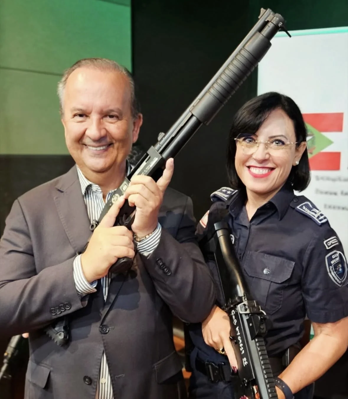 A vice-prefeita surfa na onda do estado bolsonarista aproveitando símbolos como armas para referendar seu projeto. Além de aparecer com frequência ostentando seu armamento, ela comemora a compra de pistolas para a Guarda Municipal e, em evento público da Federação Nacional de Sindicatos de Guardas Municipais (Fenaguardas), criticou o fato de os agentes municipais terem somente o porte local autorizado.