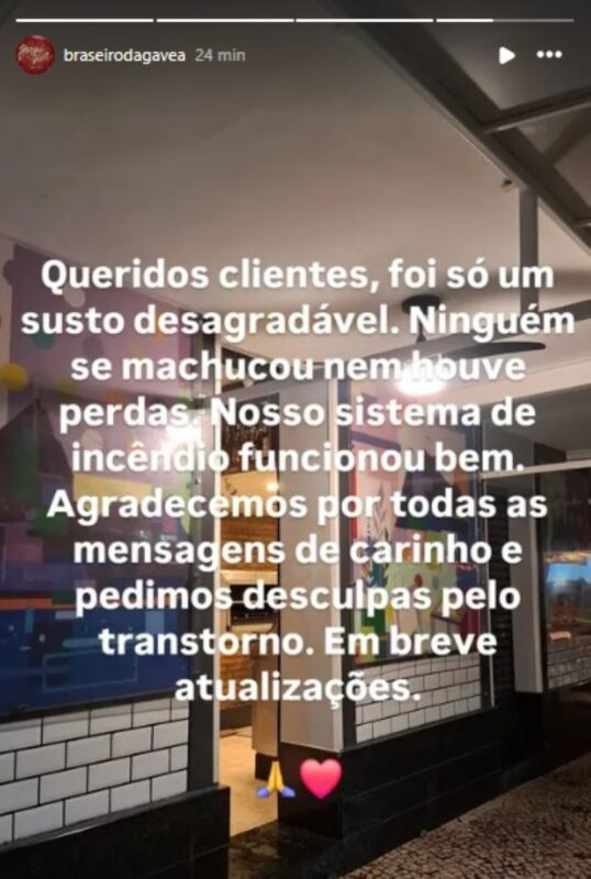 Em postagem no Instagram, o restaurante afirmou que “foi só um susto desagradável”, ressaltou que não houve feridos nem danos significativos e que o sistema de incêndio do local funcionou adequadamente. Também agradeceu as mensagens de apoio e pediu desculpas pelo transtorno.