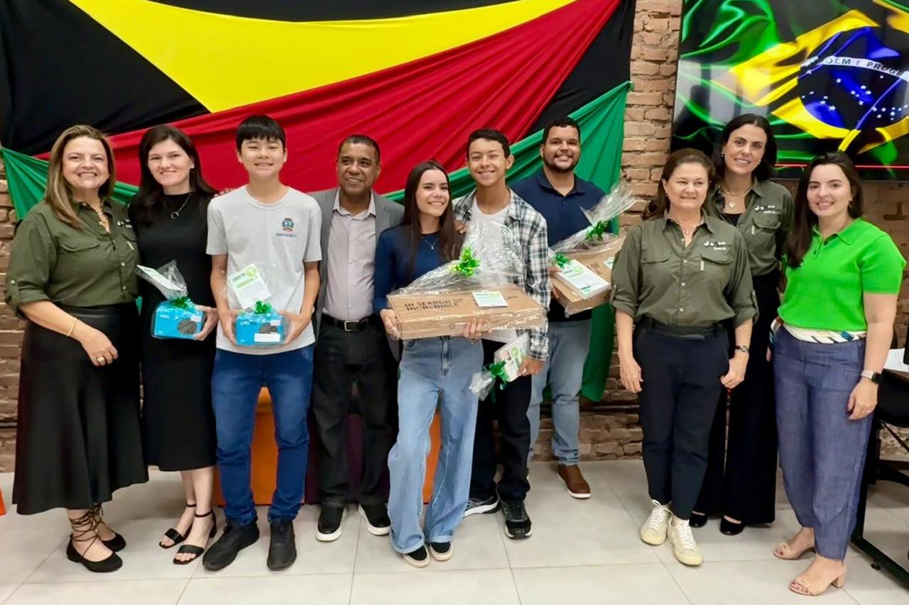 A cerimônia contou com a presença do secretário da Educação, Valdir Martins; do diretor do Departamento de Educação Básica, Christian Viana Oliveira; e das representantes da Associação De Olho no Material Escolar, Letícia Jacintho (presidente) e Flávia Marchesan Matturro; além dos familiares dos alunos premiados, professores orientadores e gestores das escolas envolvidas.