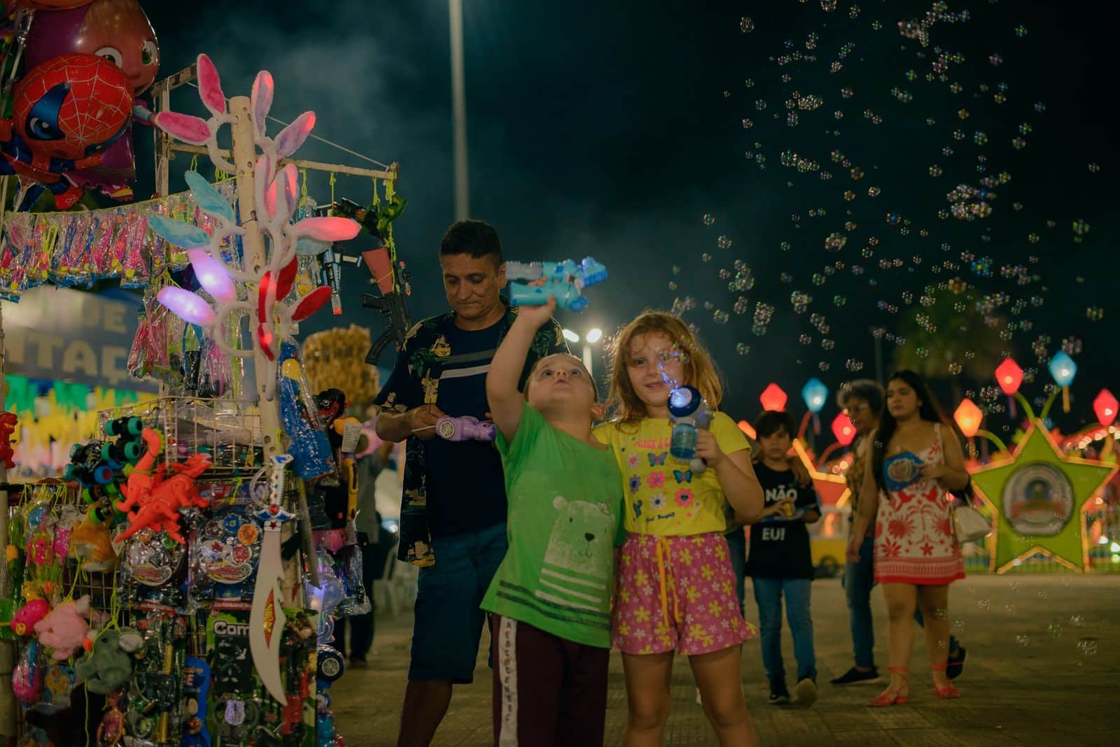 Outro destaque são as áreas com brinquedos infláveis, casa de bolinhas, pula-pula, touro mecânico e barraca de pesca, que garantem ainda mais opções para os pequenos.