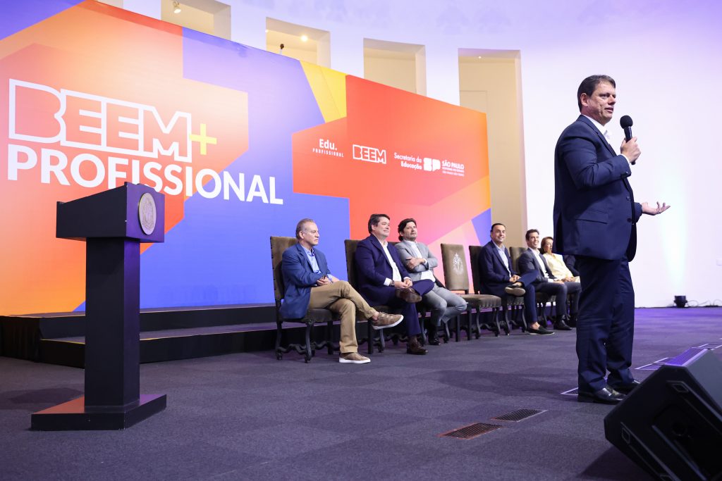 Durante o evento desta quinta-feira, o governador Tarcísio de Freitas reconheceu parceiros do programa Bolsa Estágio Ensino Médio (BEEM) com o selo “Empresa do BEEM”, criado pela Seduc-SP. Escolas com mais estagiários contratados também foram celebradas durante o encontro. No início desta semana, 9.000 estudantes já haviam iniciado o trabalho. O secretário da Educação, Renato Feder, anunciou que a meta é chegar a 10 mil alunos beneficiados até o fim de dezembro e a 30 mil estagiários em 2026.