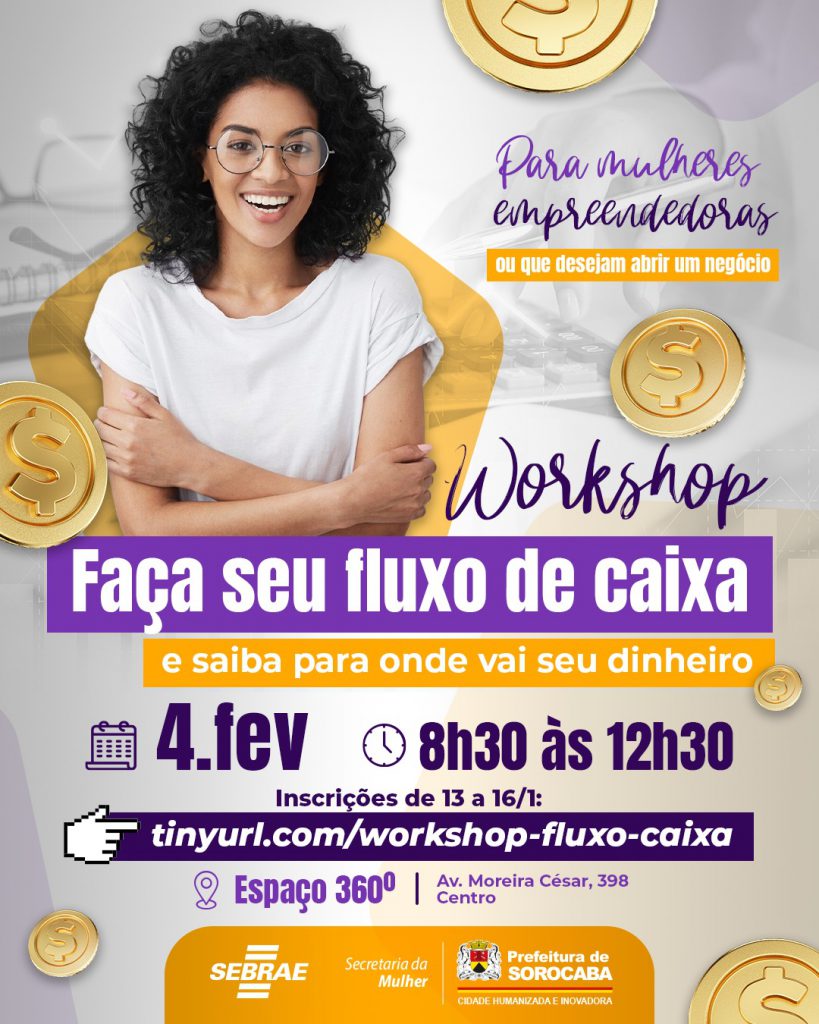 As vagas são limitadas e serão preenchidas por ordem de inscrição, que devem ser feitas no período de 13 a 16 de janeiro, pelo link: tinyurl.com/workshop-fluxo-caixa. A formação inclui a entrega de certificados.