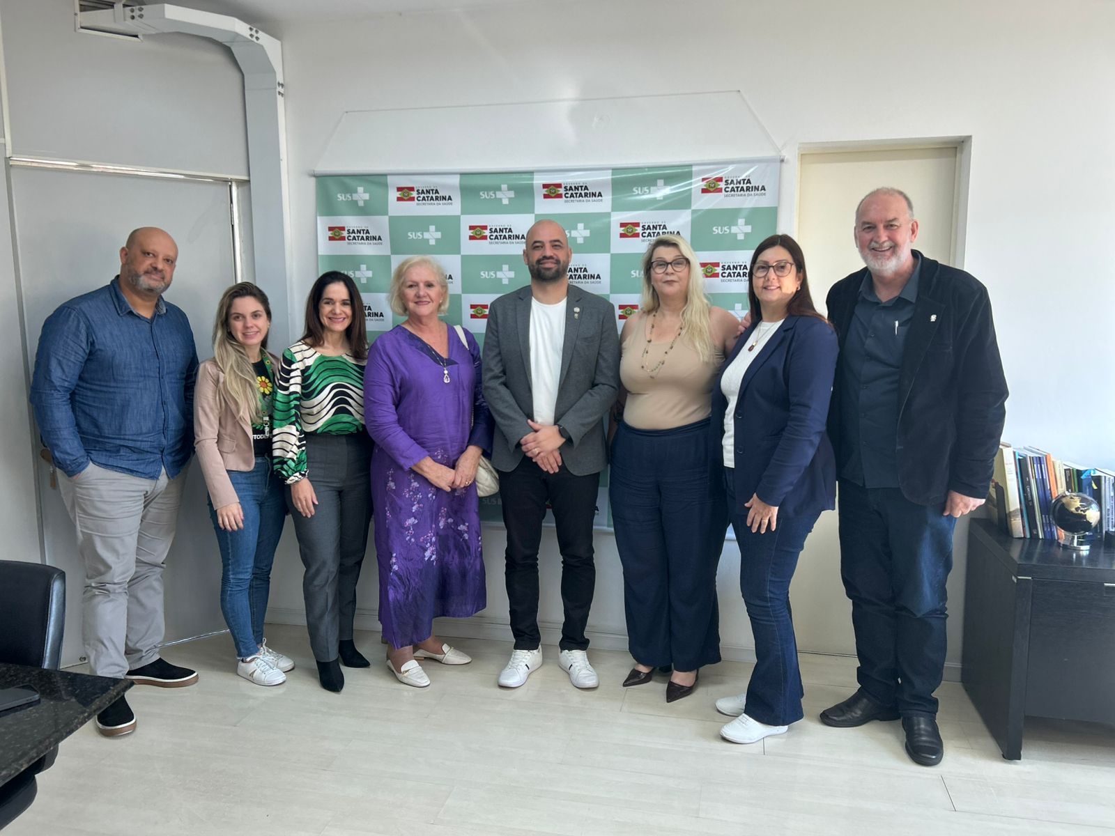 O secretário de Estado da Saúde, Diogo Demarchi, o presidente da Federação das APAEs de Santa Catarina, Osmar Minatto, e representantes de ambas as instituições se reuniram na quarta-feira, 16, na Secretaria de Estado da Saúde (SES), em Florianópolis, para tratar da ampliação do acesso aos serviços destinados a pessoas com deficiência intelectual e Transtorno do Espectro Autista (TEA).