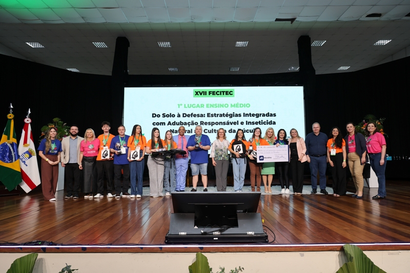 As equipes destaque da XVII Feira Estadual de Ciência e Tecnologia (Fecitec) foram premiadas nesta quinta-feira, 6, na cerimônia que marcou o encerramento da edição deste ano, em Florianópolis. O reconhecimento foi dado aos estudantes vencedores das categorias anos finais do ensino fundamental, ensino médio e ensino profissionalizante em projetos que se destacaram pela criatividade, inovação e sustentabilidade. O tema desta edição foi “Culturas Inteligentes: inovações sustentáveis para a cidade e o campo”, consolidando a Fecitec como uma oportunidade de socialização do conhecimento produzido no ambiente escolar e instrumento de divulgação científico-cultural.
