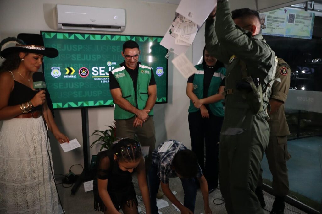 A Secretaria de Estado de Justiça e Segurança Pública do Acre (Sejusp) realizou na noite de sábado, 2, durante a Expoacre 2025 o sorteio da campanha “Um Dia com a Segurança”. O evento, que contou com a presença de representantes das forças de segurança, foi transmitido ao vivo pelo Instagram da Sejusp e atraiu a atenção do público presente.