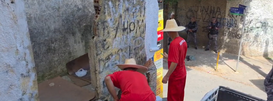 Sejusp e PM realizam operação para apagar símbolos de facções criminosas no Aglomerado Serra