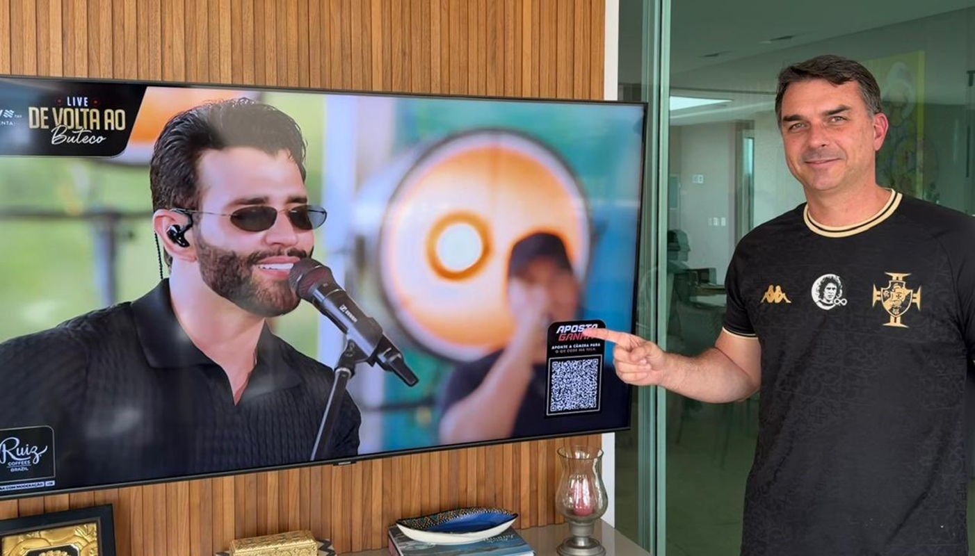O senador Flávio Bolsonaro (PL-RJ) postou, neste domingo (21/12), um registro usando camisa do Vasco da Gama enquanto assiste à live “De volta ao Buteco” do cantor Gusttavo Lima. O filho do ex-presidente Jair Bolsonaro é pré-candidato à Presidência da República nas eleições de 2026.