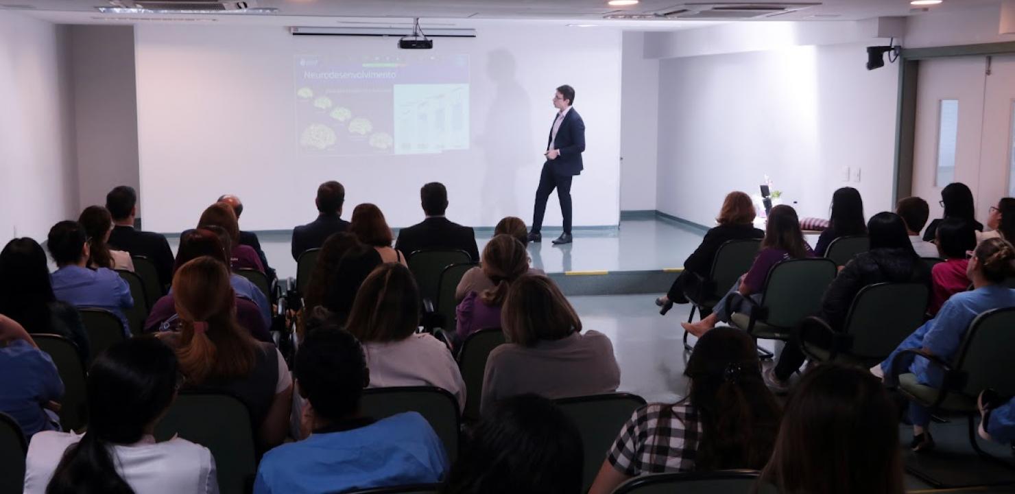 O Complexo Hospitalar dos Estivadores (CHE) sediou, na manhã desta segunda-feira (25), o Simpósio Prematuridade: pequenos começos, grandes conquistas, programação integrada ao Novembro Roxo, mês dedicado à conscientização sobre os desafios e cuidados com bebês prematuros. O evento reuniu profissionais contando histórias, avanços e discussões sobre o tema, reforçando o papel de Santos como referência regional em atendimento materno-infantil.