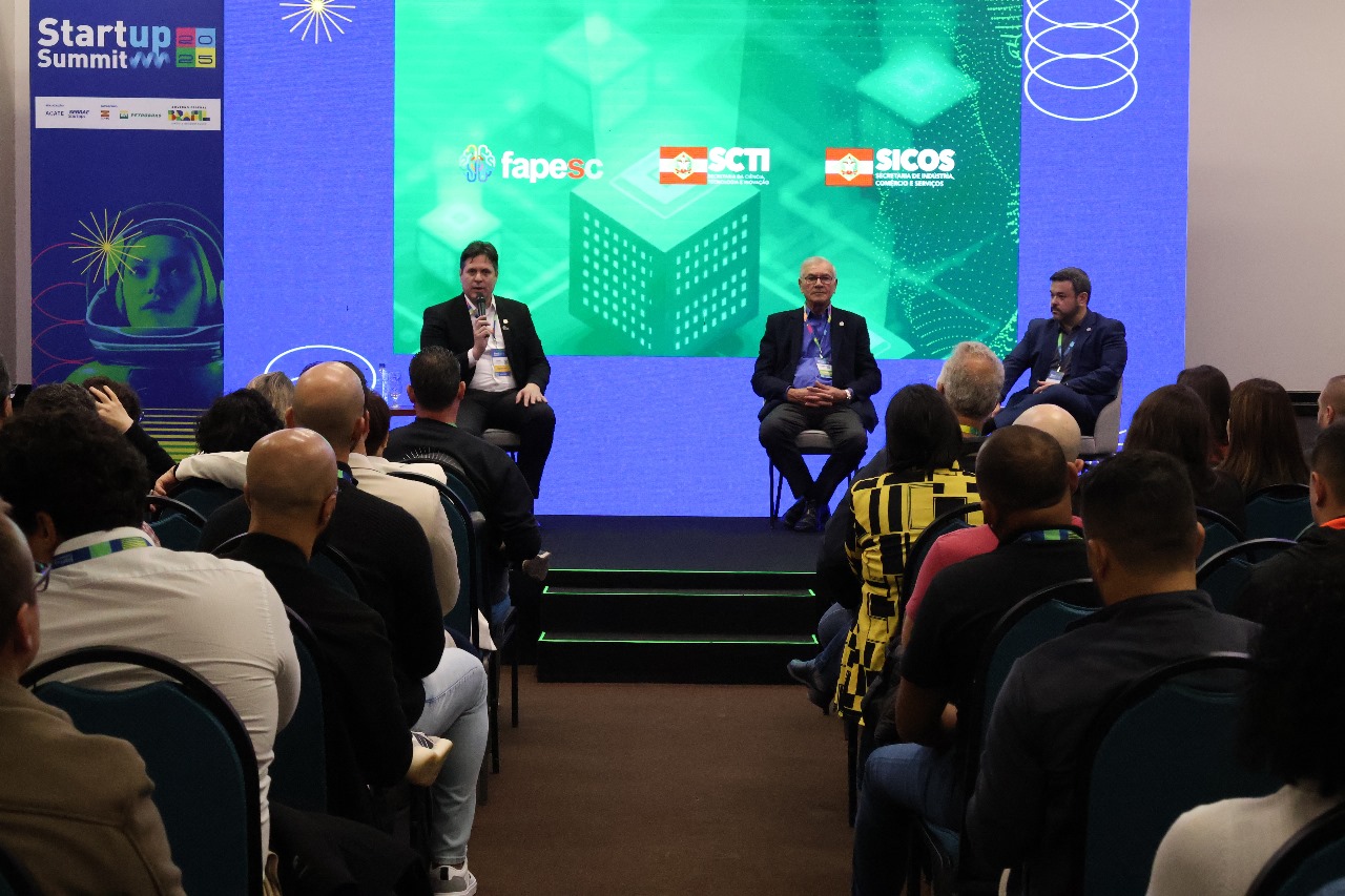 As ações do Governo do Estado para incentivar, apoiar e fomentar o empreendedorismo catarinense foram destaque nesta quarta-feira, 27, no primeiro dia do Startup Summit 2025, em Florianópolis. O painel Empreender em SC: o governo catarinense como parceiro estratégico reuniu gestores das Secretarias de Estado da Ciência, Tecnologia e Inovação (SCTI) e de Indústria, Comércio e Serviço (Sicos) e da Fundação de Amparo à Pesquisa e Inovação do Estado de Santa Catarina (Fapesc).