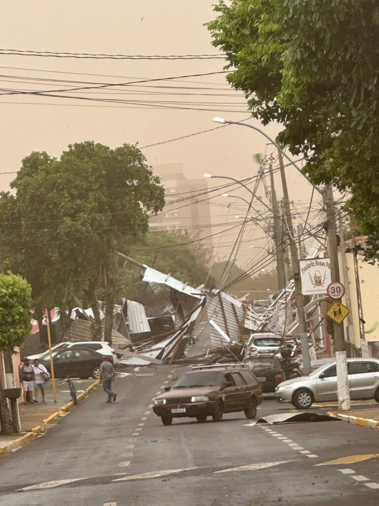 Árvores arrancadas, telhados voando, postes caídos e muita correria! A força da ventania surpreendeu até os mais experientes, com rajadas violentas que deixaram bairros inteiros sem energia. Em alguns pontos, o cenário era de guerra: estruturas retorcidas, fachadas destruídas e poeira por todos os lados.