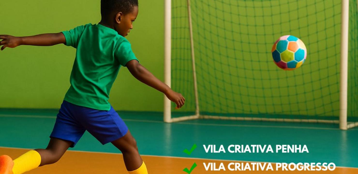 Nesta quarta-feira (26), a partir das 18h, o Torneio de Futsal das Vilas Criativas (Infantil – até 10 anos) envolve alunos das unidades da Penha, Progresso e Vila Nova. A competição será realizada em um único dia e promete partidas animadas, além de proporcionar um espaço de convivência e aprendizado, no Centro Esportivo Dale Coutinho (Rua Fausto Felício Bruzarosco, 8-120, Castelo).