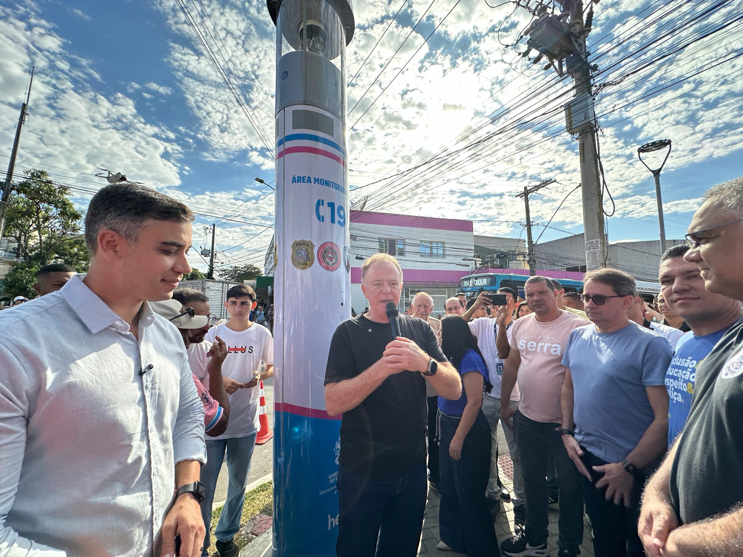 “Estamos inaugurando neste sábado o primeiro Totem de segurança da Serra. Serão oito na Serra e este primeiro fica em Serra Sede. Os totens são equipados com seis câmeras que conseguem alcançar 360 graus, têm comunicação por voz, tem como acionar e conversar com uma pessoa no Ciodes em caso de emergência. A câmera 360 graus alcança até 1km de distância. Além disso, as câmeras contam com leitura facial, então caso alguém cometa um crime nas redondeza será reconhecido ou se alguém procurado passar por aqui, a Polícia Militar é acionada na hora e viaturas são enviadas para captura-lo. Os totens são mais uma ferramenta de segurança para que nós possamos continuar enfrentando a criminalidade como temos enfrentado no Espírito Santo, trazendo resultados e levando segurança aos capixabas”, explicou Casagrande.