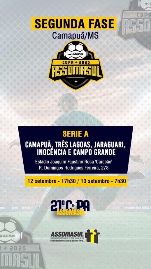 A Copa Assomasul tem como objetivo promover a integração e a valorização do esporte regional entre servidores públicos municipais. Nesta 21ª edição, 60 municípios de Mato Grosso do Sul participam, reunindo aproximadamente 1.500 atletas. A edição de 2025 introduziu a divisão das equipes em Série A e Série B, buscando equilibrar a competição e aumentar a competitividade do torneio. A Copa Assomasul celebra o espírito municipalista e a paixão pelo futebol que une as cidades do estado.