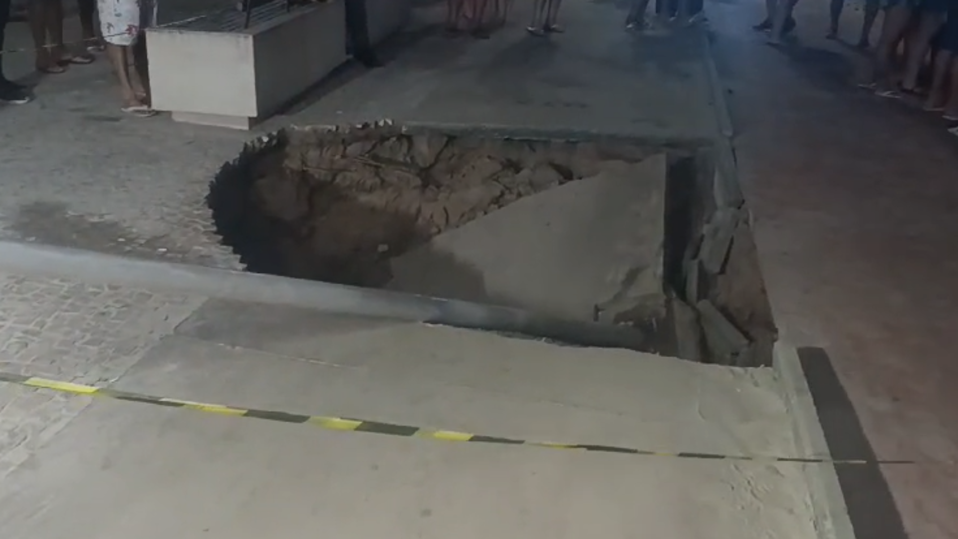 Vídeos produzidos por populares mostram a situação na orla. Nas imagens é possível ver o tamanho do buraco. Ao lado dele, uma pessoa ferida é vista sentada no chão rodeada de outras na área já isolada pela Defesa Civil e Guarda Civil Municipal. A ação ainda contou com engenheiros enviados ao local e agentes de trânsito.
