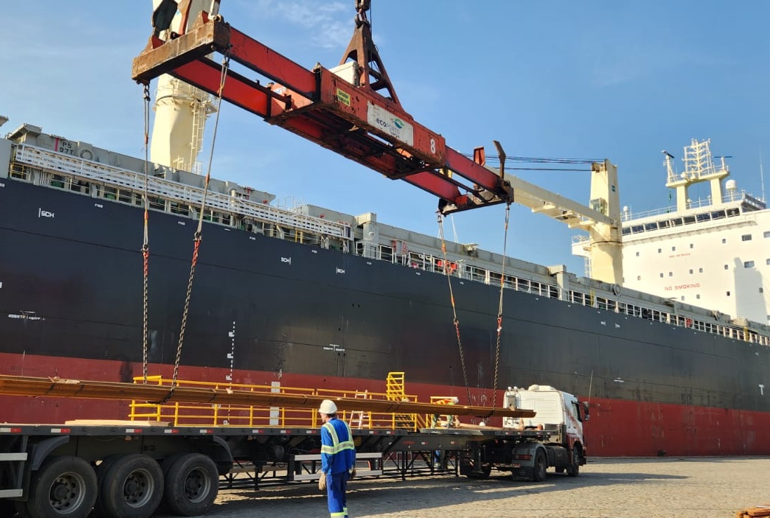 Para o transporte entre o porto e a capital, serão necessárias 47 viagens com o uso de carretas extensivas de três eixos, com capacidade de carregamento de até 32 toneladas cada. As viagens serão feitas em sistema de revezamento com duas carretas.
