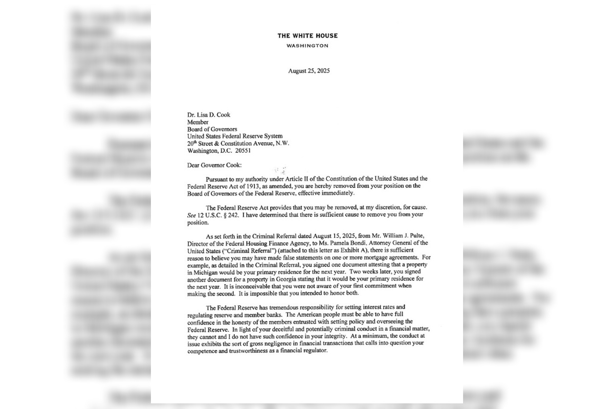 “O povo americano precisa ter plena confiança na honestidade dos membros encarregados de definir a política e supervisionar o Federal Reserve”, adicionou Trump na mensagem que destituiu Cook do cargo.