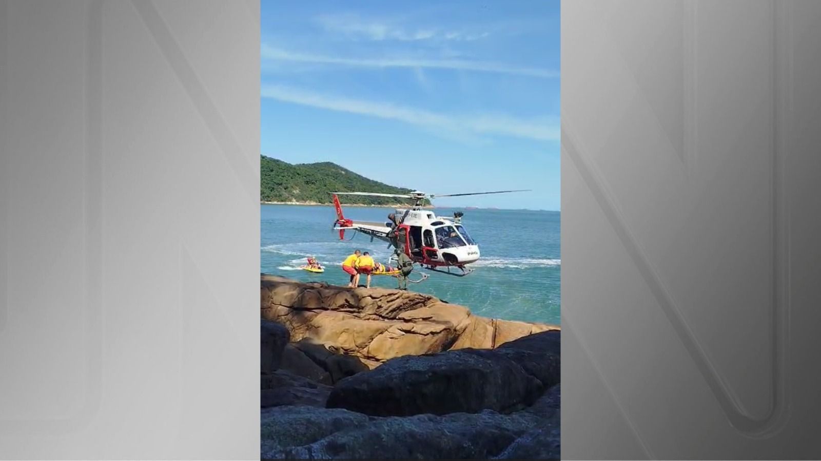Os guarda-vidas que atuam na região prestaram os primeiros atendimentos no local. As equipes do GBMar utilizaram o helicóptero Águia, da Polícia Militar, para realizar o resgate da vítima, que estava em um local de difícil acesso.