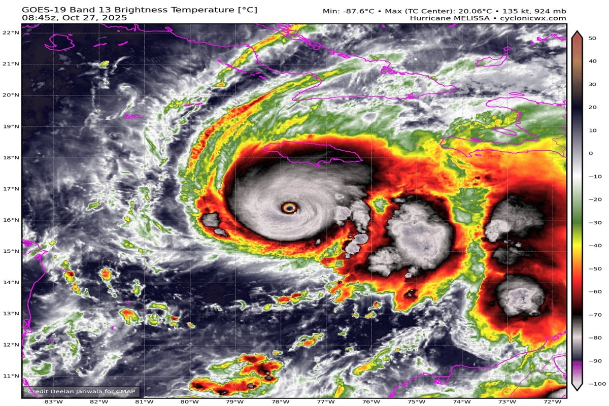 “Melissa ganhou força e se tornou um furacão de categoria 5, com ventos de 257 km/h e pressão central de 917 mb, confirmado pelos Caçadores de Furacões da Reserva da Força Aérea. As condições na Jamaica piorarão rapidamente ainda hoje e à noite”, comunicou o Centro Nacional de Furacões dos EUA.