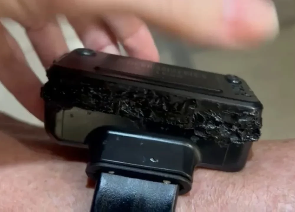 Pelo que diz o texto, o equipamento tinha “marcas de queimadura em toda sua circunferência, no local do encaixe/fechamento do case”.